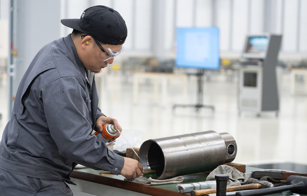 未経験で組立に配属され、製品テストを通して構造を一から学んできたKさん。現在はシリンダ組立を担当し、精度と美しい仕上がりにこだわりながら作業している。日々の積み重ねが成長につながると信じ、丁寧なものづくりを続けている。