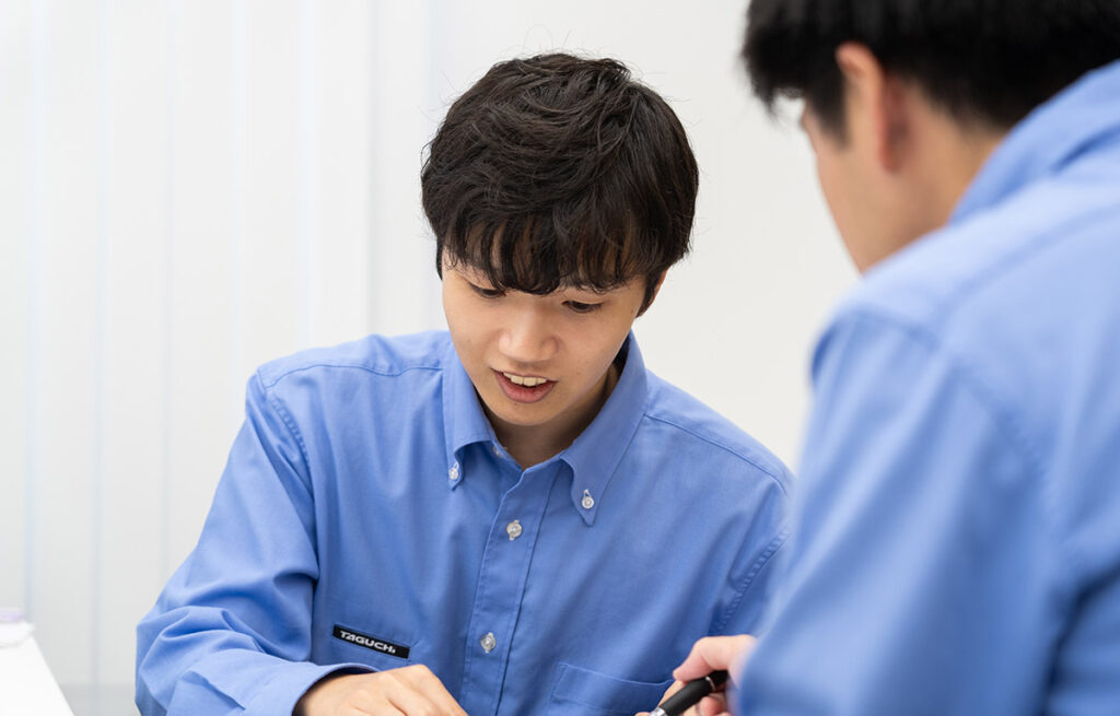 設計と製造の両面から効率化に貢献できて、製品の精度とスピードをさらに高めたい。タグチ工業のモノづくりを支える一員として、自分も会社と一緒に成長していきたいです。