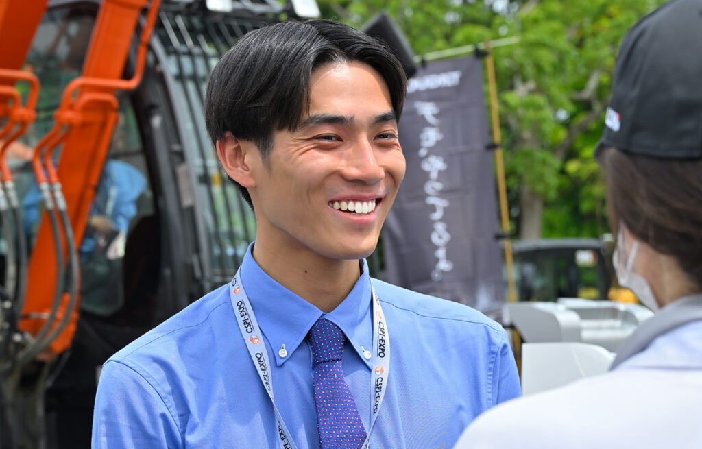 合同企業説明会で見かけた「営業職大募集中」ののぼりに誘われ、タグチのブースに着席。話を聞くうちに興味が湧き、都市再開発に不可欠な解体業の将来性に魅力を感じて入社を決める。