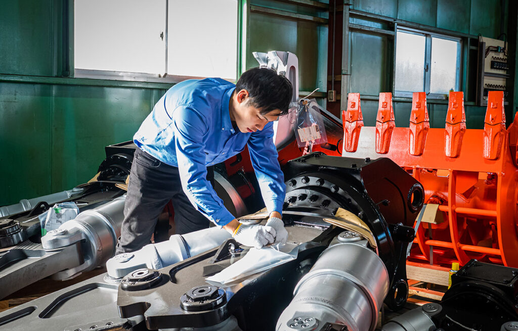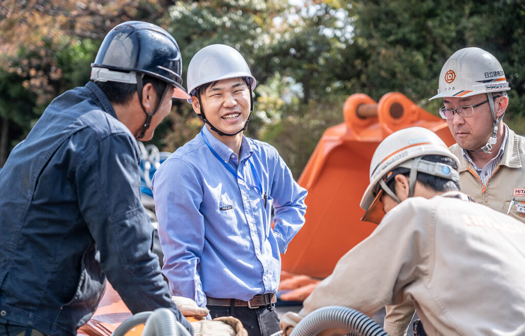 建設会社や解体業といった、重機を取り扱う既存のお客様を中心に、ルート営業・新規開拓をしています。工事によって必要なアタッチメントはそれぞれ違うので、しっかり話を伺いながらご要望にあった製品を提案します。メンテナンスやレンタルの依頼等、声をかけてもらえるタイミングは様々。どんなお問い合わせにもすぐに対応できるように心がけていますね。また、新製品のPRも営業の大切な業務です。全国各地で開催される自社イベントや展示会にも参加して、タグチの新製品の特長・魅力をお客様にわかりやすくお伝えしています。