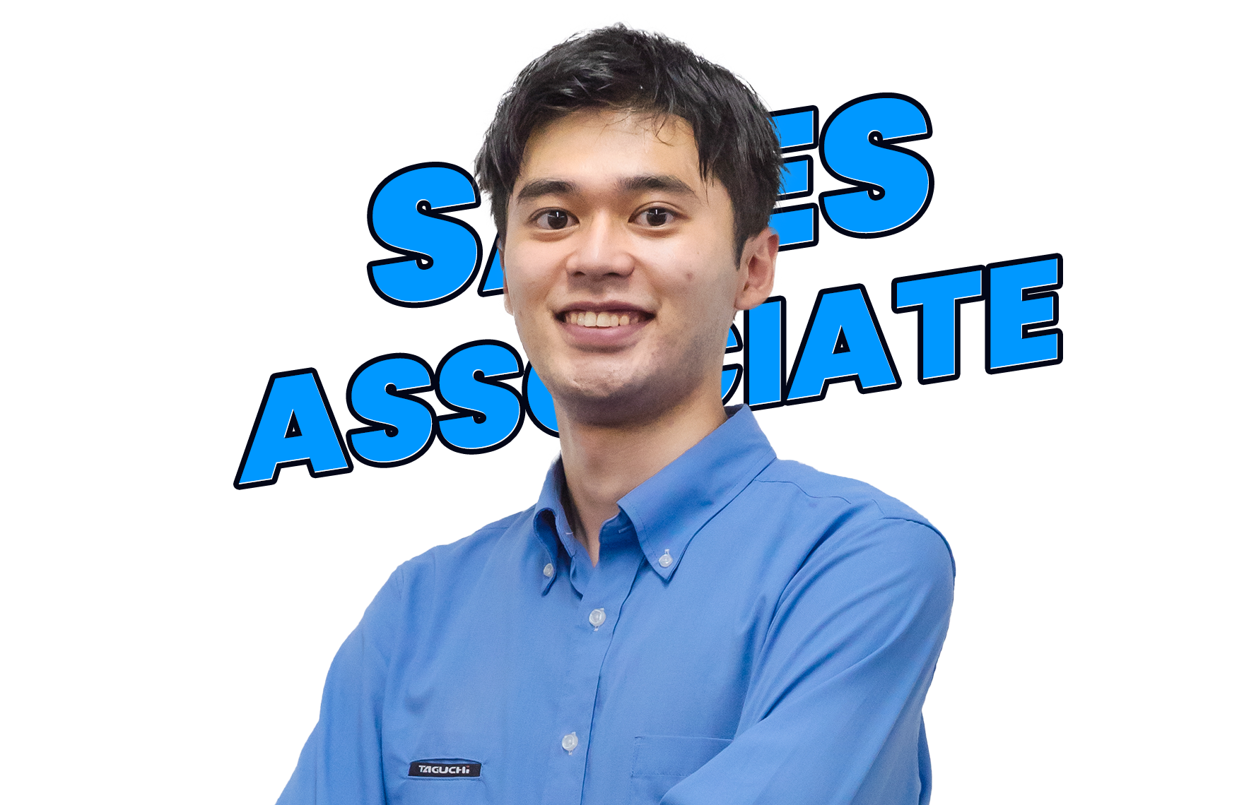 面接時の営業所見学で初めて実物のタグチ製品を見た瞬間、その迫力に圧倒され「これを売りたい」と感じて入社を決意する。未経験からのスタートだったが、不安よりワクワクが勝っていたと話すTさん。今はスピードと誠実さを大切に、お客様に頼られる営業を目指している。