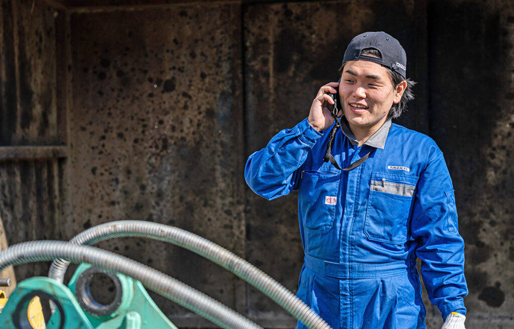 求人広告営業から転職し、未経験でタグチへ。体力や知識に苦戦しながらも「プロの立ち回り」を意識。現在は営業所を任され、お客様の現場を支える仕事にやりがいを感じ、必要とされ続ける仕事に誇りを持って働いている。