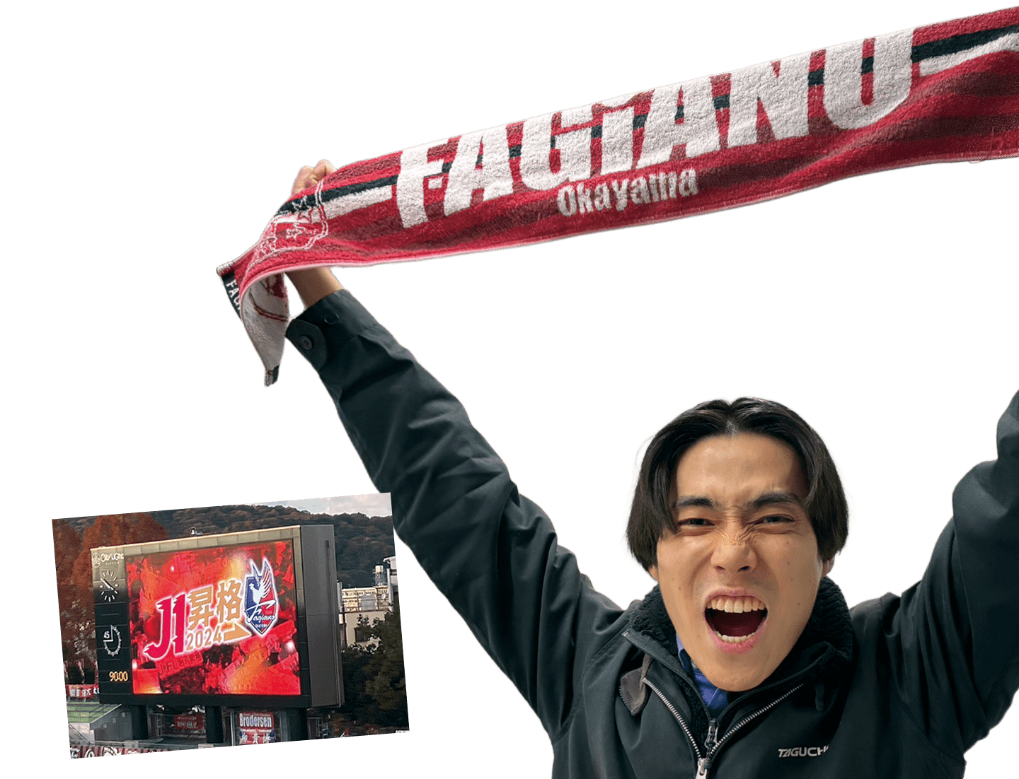 小学校3年生からファジアーノ岡山の大ファンです。父親がファンだったこともあってその影響ですね。特にこの選手が好きというよりも、チーム全体が好き! シーズン中は僕がいる静岡営業所から近いアウェー戦はもちろん、岡山帰省のタイミングと合えばホーム戦まで。大事な試合となればどこへでも参戦して声高らかに応援します。昨シーズンは横浜(2回)、浦和、神戸、名古屋、湘南、町田、東京、川崎、清水に行きました。「来年も再来年もJ1!!」というのが僕の願いです!