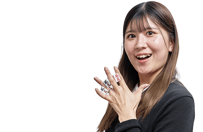 ある日友人夫婦に誘われて、夫と一緒に(卓を)囲んだのがきっかけです。2年ほど前です。役を憶えていくにつれてどんどん楽しくなってどハマりしました。あー、もうこれ一生ものだわ、という感じ。牌も買いました。マイ牌です。いまは月に2回ほど。本社の近くにある雀荘か友人の家で。雀荘は自動の雀卓ですが、家でやるときは手積みでやってますよ。好きな役は混イツ、とくに萬子で組むのが好きなんです。これまで役満は国士無双を一回だけ。でも、つい先日上がったんですよ。四暗刻単騎待ち。夢のダブル役満です! 将来は子供と一緒にできたら。家でいつでも麻雀ができる家庭、最高です!