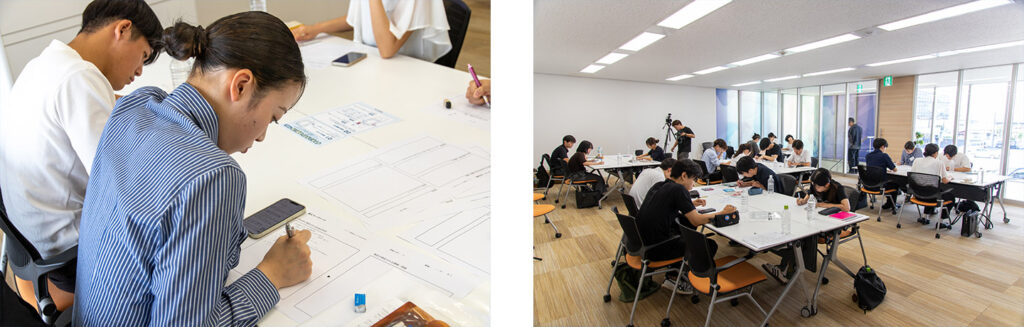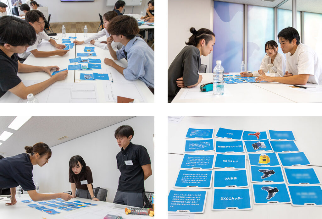 最初のワークは「製品パズル」。バラバラになっている製品の写真・名前・用途・価格のピースを正しく組み合わせるという内容です。初めての実施でどうなるかドキドキしていましたが、学生の皆さんは真剣に取り組んでくださり、正解発表をすると会場は大盛り上がり!