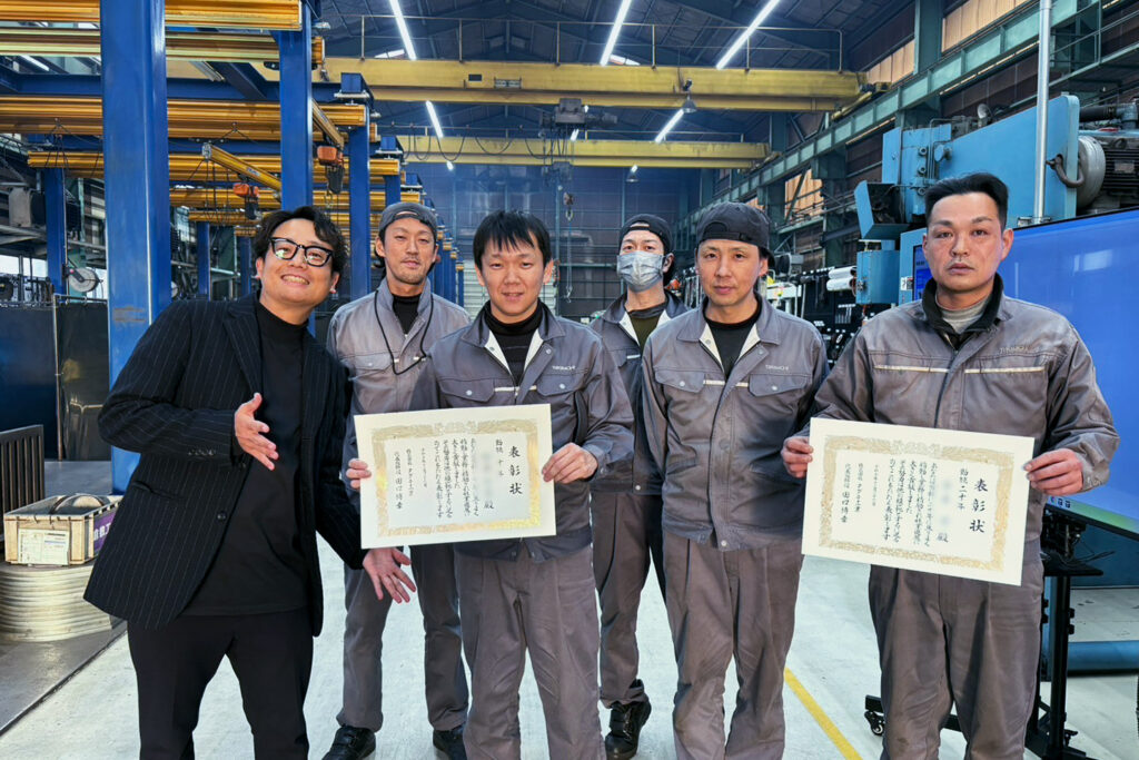 年末恒例の永年勤続表彰式を行いました。今回は10年目が9名、20年目が2名、最長の30年目は1名の、計12名を表彰。各工場にて、田口社長が「これからもよろしく!」と表彰状をお渡ししました。